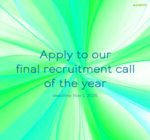 To apply for any of these unpaid positions, please send a cover letter (as a Word doc or in the body of the email please!) explaining why you’d like to join our team and a copy of your CV to editors@asymptotejournal.com, with "APPLICATION:" and the position(s) you’re applying for in the subject line. Take note that most positions will start out with a 3-month orientation (requiring a commitment of eight hours a week) during which you will get to know the journal and your fellow team members. After this orientation period, we will evaluate your performance and determine your future role with Asymptote. (Hours will come down to four to eight hours a week, depending on which permanent role you’ve taken with us—some project-based positions may not even require a weekly commitment.)