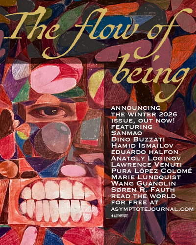If you’re here, then you love world literature. Do you have a little spare time to give? Have you got a network of literary contacts? If so, please consider joining our newly established support team. This is a fast-growing network of global volunteers working in their free time to promote the journal’s new content both online and in person, and acting as a focus group to provide invaluable feedback via questionnaire after each issue has been published. While this is an ad-hoc role, requiring very little time commitment, we will encourage you to feel an essential part of the overall running of Asymptote, the success of which requires the on-going support of passionate people like you.