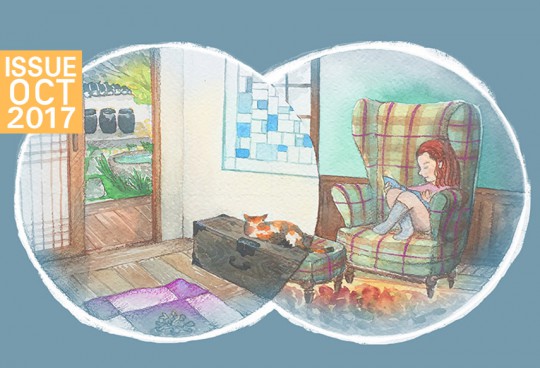 As I looked at the Fall 2017 issue of Asymptote, I felt as if I had just been invited to a literary dastarkhan. In Central Asia, when guests arrive and are invited into the interior of a traditional house to sit on the floor, a large tablecloth is thrown on the ground and rapidly filled with a mix of delicacies and treats from various parts of the region. Fruits (fresh and dry), cooked meats, drinks (hot and cold), vegetables, sweets, bread and rice are all displayed to please the eye. Despite being very different, they all contribute to the same feast. Just like any issue of Asymptote in fact: a collection of diverse texts from various corners of the world all united by an underlying theme, and carefully curated to satisfy the most curious minds. As I read this issue, I sensed it had been especially designed to please my literary taste buds.