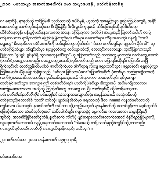 Various Burmese Poets in this issue include Khin Aung Aye, Maung Chaw Nwe, Eaindra and Pandora.